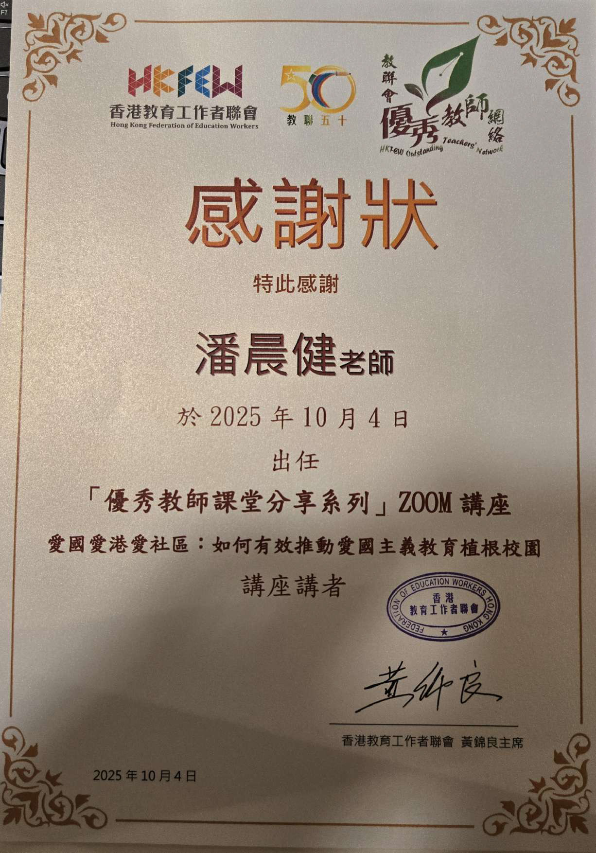 教聯會「優秀教師課堂分享系列」ZOOM講座
