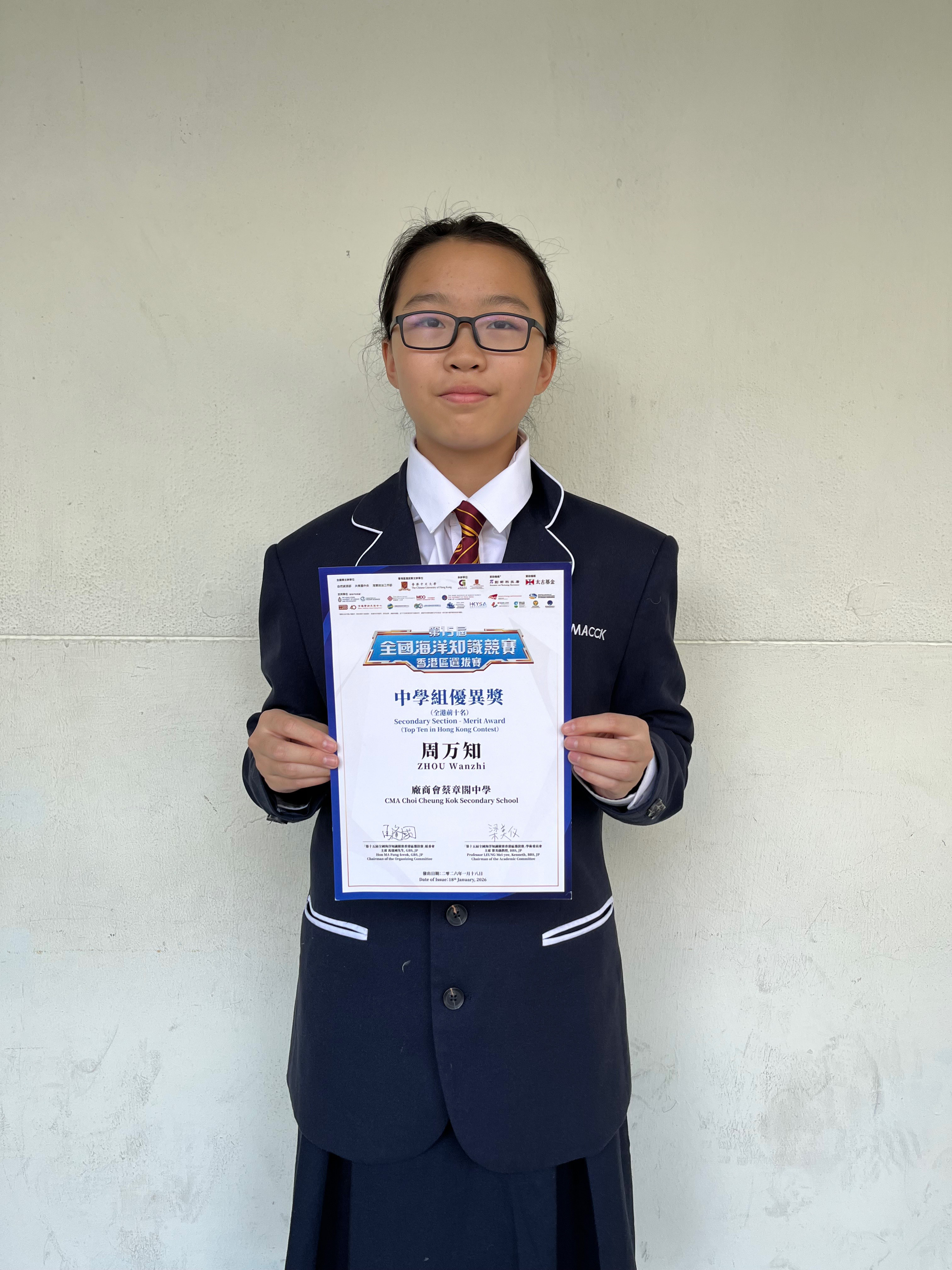 「公眾答題中學生組」全港前 10 名獎項 (中學組優異獎) |